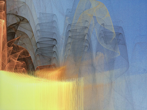 Fractal flames are essentially 3d fractals that are ‘freeze-framed’ to create the chosen images. Fractal flames are mathematical algorithms which lie behind natural phenomenon. They can describe patterns as found in clouds, water, sand as well as leaves and plant forms.